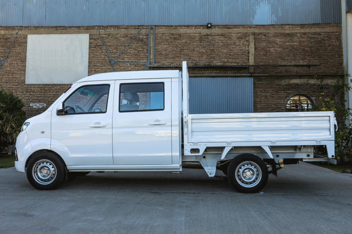 Aún siendo doble cabina la T32 tiene una capacidad de carga de 850 kg en su caja completamente rebatible.